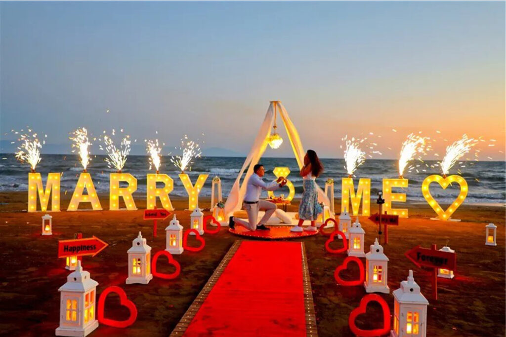 Sahilde evlilik teklifi paketimiz, doğal güzellikleriyle ünlü sahil bölgelerinde, altın renkli kumsalların, masmavi denizin ve güneşin tadını çıkarabileceğiniz özel mekanlarda gerçekleşiyor. Profesyonel bir ekip tarafından organize edilen etkinlikte, pasta, içecek, volkan konfeti, meşale, sis volkanı, havai fişek gibi özel detaylarla romantik bir atmosfer oluşturuyoruz.